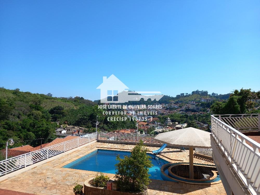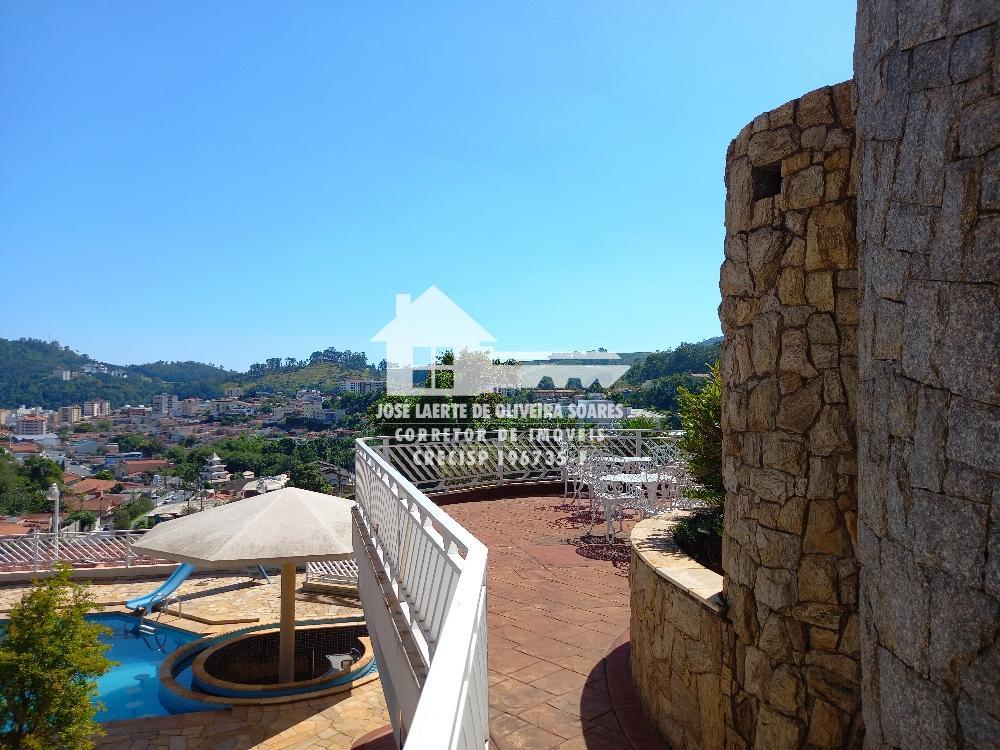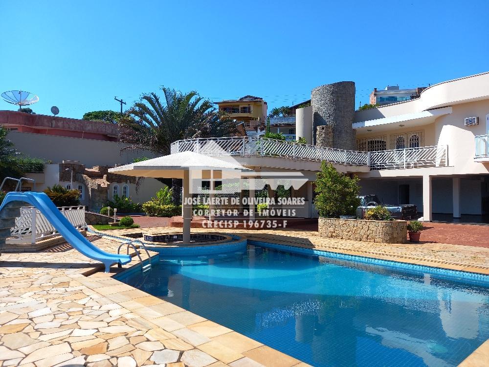 Parte inferior com ampla cozinha, forno de pizza, churrasqueira, suíte para visitas, quarto de despejo, garagem para até 04 veículos, além de capela, canil, piscina com cascata e bar molhado, ducha escocesa, sauna, vestuário e jardim.